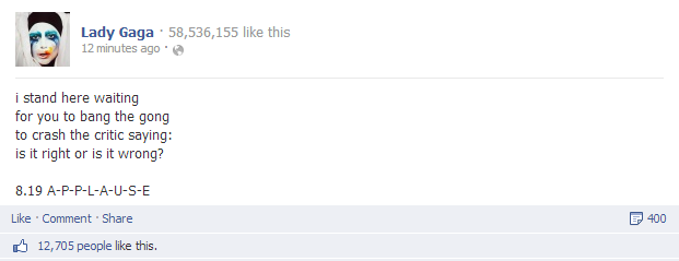 Lady Gaga continĂșa compartiendo los lyrics de 'Applause'