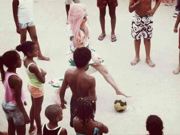 Lady Gaga sigue en su gira, y hace nada iba a dar su primer concierto en Río de Janeiro, visita que aprovechó para algo más que cantar. La cantante visitó a los habitantes de Cantagalo, una favela en Brasil que se encontraba muy cerca del hotel donde se alojaba, y donde hemos podido verla junto a un grupo de niños. ¡Qué maja! Porque no fue sólo para unas fotos de esas que muestran el lado solidario de las celebrities, aunque luego no se impliquen nada: la intérprete de 'Alejandro' se molestó en conocen un proyecto solidario en colaboración con la Unesco, llamado Criança Esperança, y se ha dado a conocer que antes de su concierto, cantó con los niños e incluso jugó al fútbol descalza (porque si lo hace en alguno de sus plataformones podría morir en una caída), como puedes ver en la foto al final de esta entrada. ¡Tiembla, Ronaldo!
