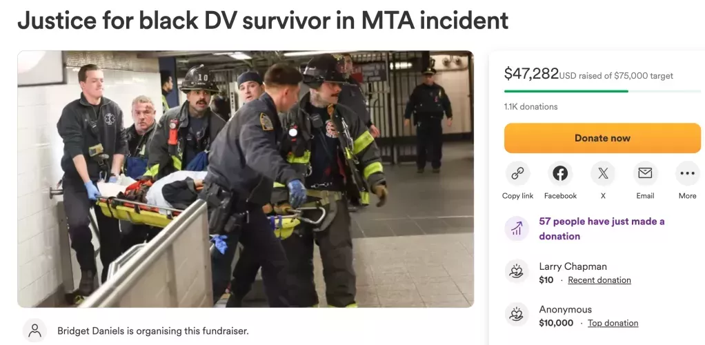 La descripción en el sitio de crowdfunding dice: "En un giro devastador de los acontecimientos, el intento desesperado de una mujer por escapar de su agresor, Christian Valdez, resultó en un trauma severo y lesiones que alteran la vida. Empujada a las vías del metro en Manhattan, se enfrentó a la brutal realidad de la violencia doméstica y a las desgarradoras consecuencias de buscar refugio.
