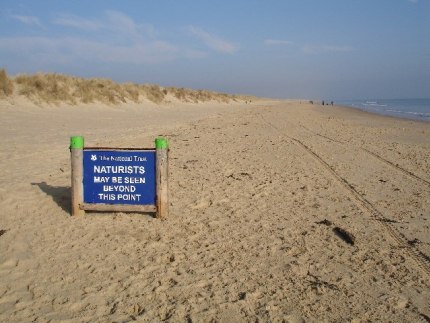 Playas gays nudistas: Cartel naturista en la playa nudista de Bournemouth (Wikimedia Commons)