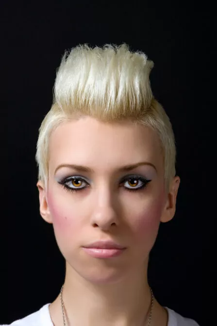 Un corte de pelo de género neutro que está más en el lado extremo es el mohawk, especialmente si trabajas con picos largos en el look. En esencia, el mohawk consiste en conservar una franja de pelo en el centro de la cabeza mientras se mantienen los lados afeitados. La versión punk incorpora púas largas (y a veces de colores) para amplificar la fiereza de este peinado.