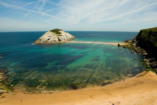 La playa de Covachos en Cantabria es salvaje, con arena dorada mezclada con roca que esta situada a menos de diez kilometros de Santander. En epoca de marea baja, se descubre un tombolo que conecta la playa con el islote del Castro. Es una playa con un publico predominante nudista, que ofrece un paisaje singular pero a la vez precioso del lugar por la pequeña cascada de la misma. Esta playa no dispone de parking, chiringuito ni zona de cruising.