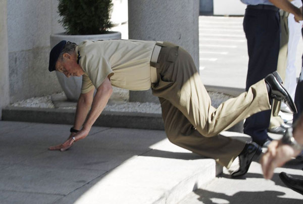 El Rey no cae bien. Y no nos referimos a sus problemas con los primos de Dumbo y demás de los últimos meses, durante los cuales la monarquía española parece que no levanta cabeza. Esta mañana el Rey Juan Carlos se ha caído de bruces al tropezar en una escalera (¿por qué le hacen subir escaleras al pobre hombre?) en un acto oficial, cuando realizaba una visita al Estado Mayor de la Defensa. No ha sido grave, pero allí estaban las cámaras para fotografiar el tropiezo real. O tal vez el rey sea un hipster un poco tardío y esté haciendo planKING (badum-tss!) en un intento de acercarse a las juventudes.