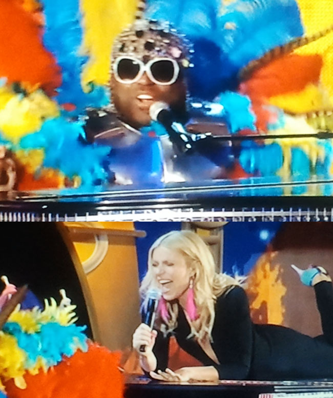 4.02 Katy Perry acaba de cantar 'Like In The Movies' con imágenes reales de su boda con Russell Brand y luego ha animado la cosa con 'Teenage Dream". Sus tetas parecen crecer sin parar. Inmediatamente después aparecen John Mayer, Keith Urban y una muchacha. Cantan 'Jolene' de Dolly Parton y presentan el premio a canción del año.