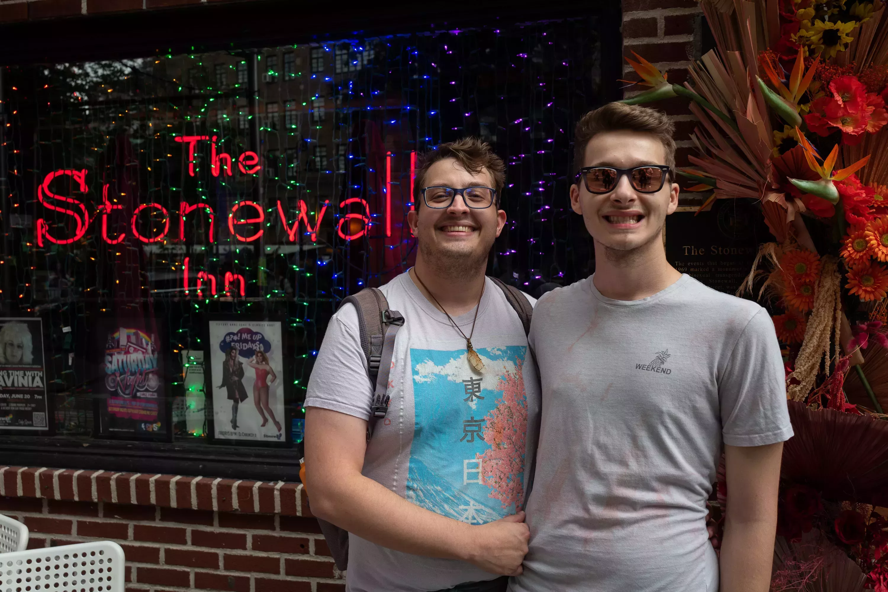 Una pareja, Derek Gibson, de 27 años, y Cole Bullock, de 22, voló a la Gran Manzana desde Missouri para visitar Stonewall por primera vez y empaparse de su historia.