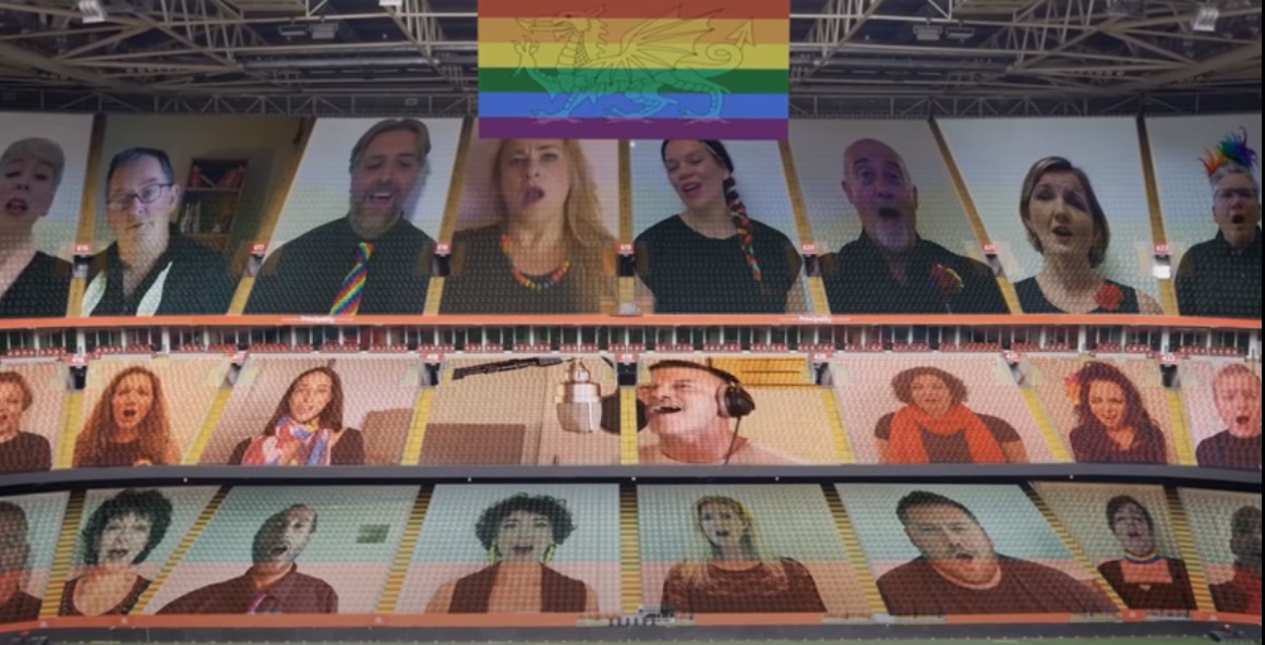 Como en la mayor parte del mundo, las celebraciones del Orgullo en persona y los conciertos están fuera del menú en Gales este año, con el actor y los miembros del coro y la orquesta de la OMD actuando virtualmente mientras se engalanan con el arco iris.