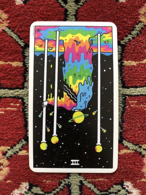 El Tres de Bastos invertido quiere que busques una nueva visión.