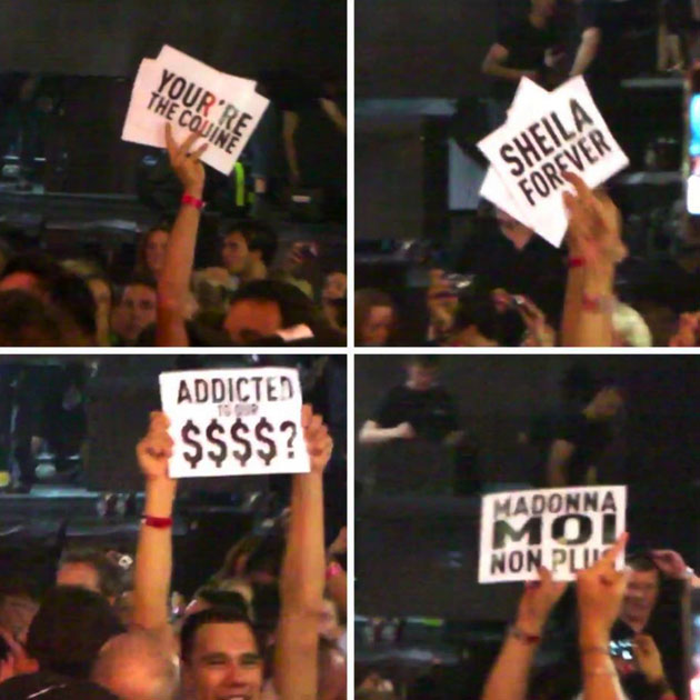 Por otro lado, daba la sensación de que un sector de fans se había quejado por haber pagado para asistir al concierto y encontrarse con menos de una hora de show... Pues bien, parece que todo tiene una explicación. Un grupo de activistas del partido de Marine LePen consiguieron introducirse en el concierto y ya traían carteles impresos de casa con consignas del estilo 'Adiccted to our $$$' o 'You're The Couine', que es un juego fonético que imita la palabra 'Queen' pero que en francés significa "Tú eres el chillido".