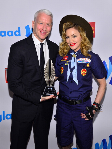 Madonna entrega a Anderson Cooper el premio GLAAD disfrazada de boy scout