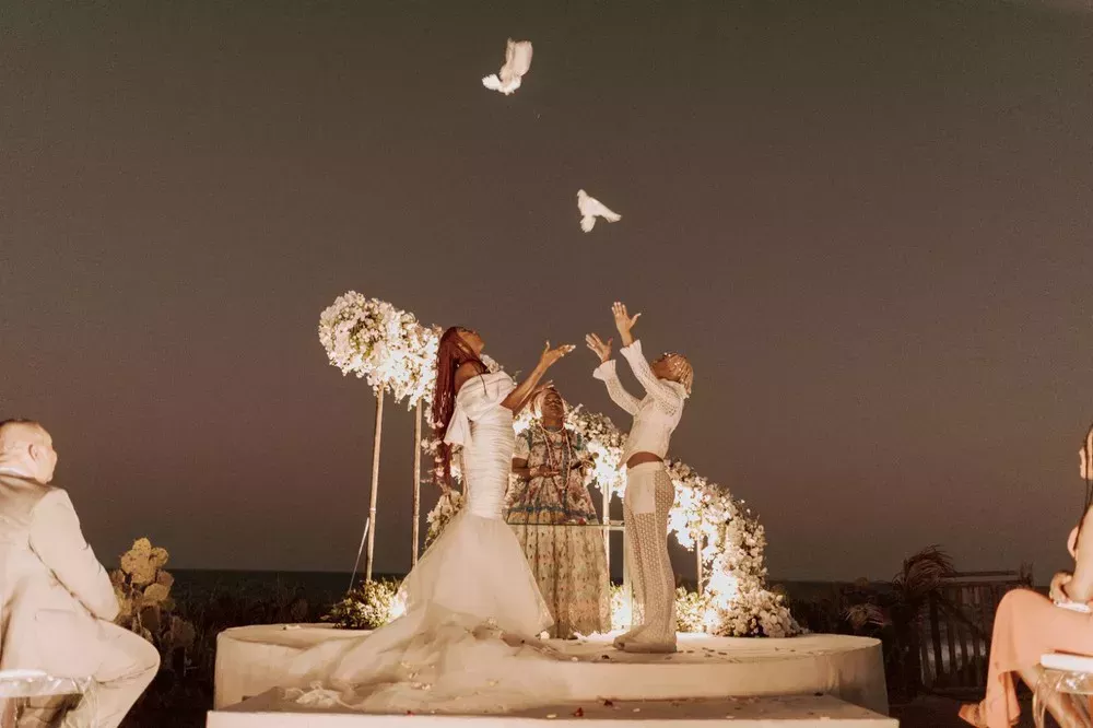 La boda se celebró en una ceremonia de matriz africana y todos los detalles se diseñaron según las preferencias de la pareja.