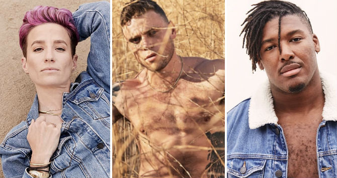 Entre ellos se encuentran el esquiador olímpico Gus Kenworthy, el jugador de fútbol ganador de la Copa Mundial Megan Rapinoe, el futbolista Ryan Russell, el modelo de talla grande Michael McCauley (abajo), el jugador de rugby británico Keegan Hirst, el bailarín de ballet Harper Watters, el comediante Andy Lalwani y los activistas trans Laith Ashley y Leyna Bloom.