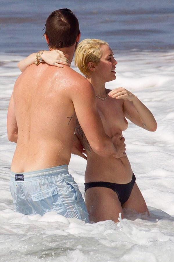 Miley Cyrus, pillada desnuda en la playa con su novio
