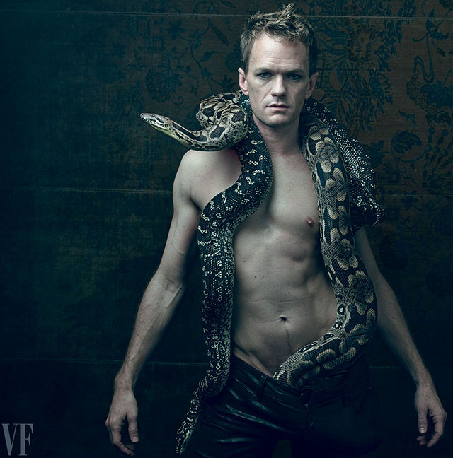 Neil Patrick Harris sin camiseta y con una serpiente enorme entre las piernas: el actor gay de 'How I Met Your Mother', fotografiado por Annie Leibovitz para Vanity Fair.