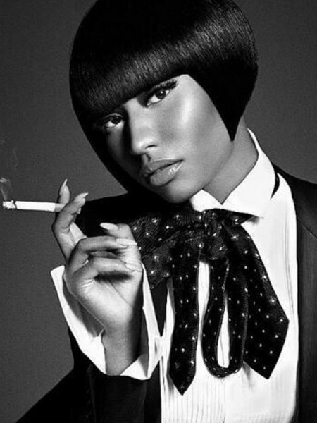 Nicki ha querido dárselas de elegante, por detrás y por delante, protagonizando una sesión de fotos muy masculina pero, por supuesto, siempre con las tetas por delante: Nicki con corbata y camisa directa a la oficina. Y con las tetas fuera. Nicki con su americana dirigiéndose a una importante reunión de negocios. Y con las tetas fuera. Hasta cuando se disfraza de mopa con flecos la mar de útiles, también enseña las tetas.