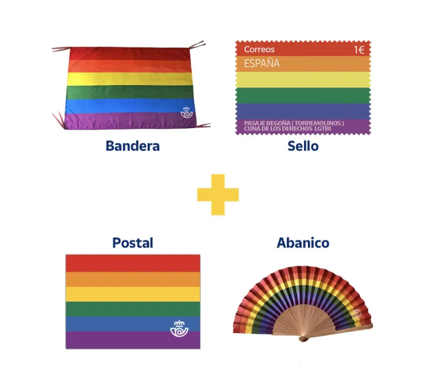Sello: Este sello tiene el valor de un euro y puede adquirirlo en las oficinas principales de Correos más cercanas de tu casa o bien, a través de su tienda online. Se trata de un sello de tamaño medio con los colores de la bandera lgbt.