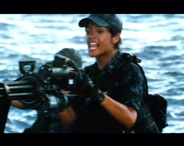 No esperes que protagonice una película sobre una chica que persigue un sueño, el de cantar. La de Barbados se estrena en 'Battleship', una peli de acción con Alexander Skarsgard. Ella interpreta a una soldado cuyo papel es el de chillar de la forma más horrible 'What the heeeeelllll' en en el trailer que hoy te traemos.