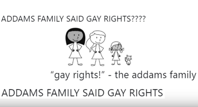 Otro dijo:"La familia Addams acaba de decir los derechos de los gays, ¿no?"