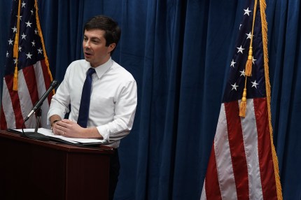 Alcalde de South Bend, Indiana, Pete Buttigeig habla durante una conferencia de prensa el 23 de enero de 2019 en Washington, DC. (Alex Wong/Getty)