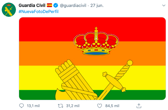 Se desata una nueva polémica por el homenajes de la Guardia Civil al Orgullo. La Guardia Civil cambió su perfil de twitter por una imagen que luce los colores del arcoíris en el dia del Orgullo Virtual, después de este gesto los aplausos llegaron pero también mensajes cargados de odio y lo peor de homofobia. Por estos motivos es necesario aumentar gestos y continuar con el Orgullo.