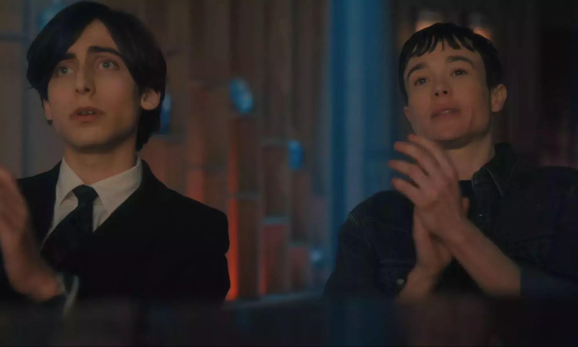Como parte del nuevo avance de "Next on Netflix", el servicio de streaming compartió un breve clip de Elliot Page y la estrella de Nicky, Ricky, Dicky & Dawn Aidan Gallagher como Viktor y Five Hargreeves aplaudiendo asombrados. A qué, exactamente, no se sabe.