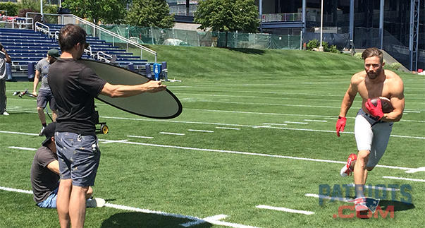 Se han filtrado unas fotos de la sesión de fotos (sí, muy meta todo) y en ellas podemos ver a Julian Edelman desnudo de cintura para arriba, en su hábitat, el campo de fútbol y con la ropa reglamentaria excepto la que cubre su torso, que ya que lo tiene tan bonito no se lo va a esconder. ¿Será el nuevo Tom Brady, ahora que este último nos cae fatal por apoyar abiertamente a Donald Trump y sus políticas racistas?