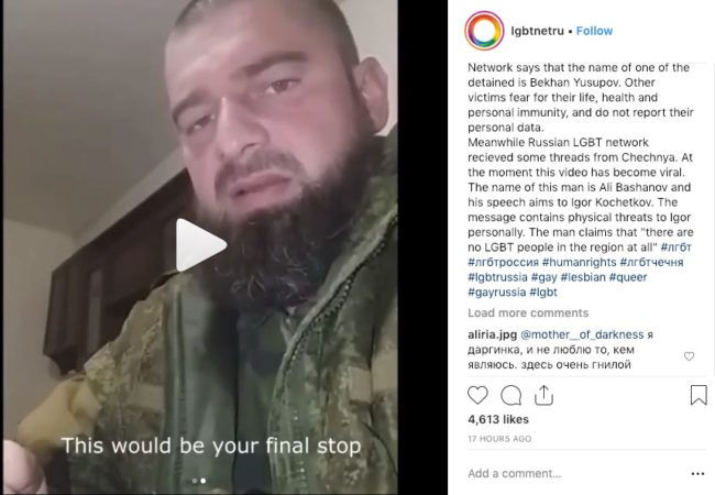 La Red LGBT+ rusa también ha recibido amenazas de Chechenia debido a su activismo. El grupo publicó un video en su página Instagram el 29 de enero, identificando al hombre del video como Ali Baskhanov.