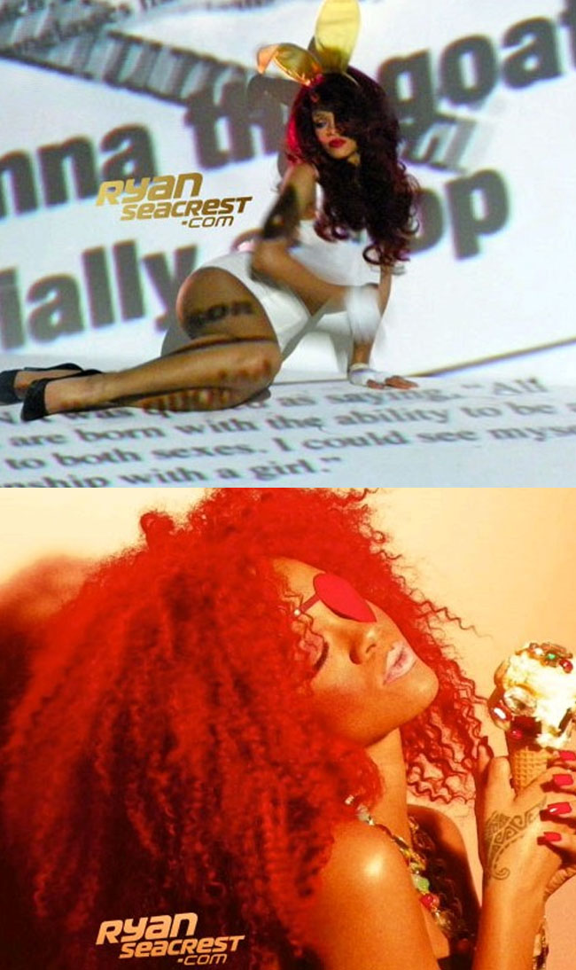 Rihanna, que saca singles como churros desde 'Rated R', tiene casi listo el vídeo de 'S&M' la versión de 'Sexy Bitch'. El look es pelo rojo rizadísimo en plan Janet Jackson cuando sacó 'The Velvet Rope' y también un poquito de conejismo de Playboy.