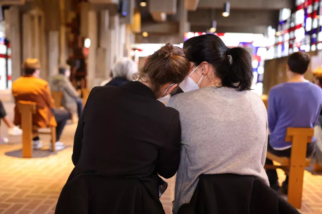 Una mujer y su pareja se sienten muy conmovidos por la bendición de la Iglesia Católica