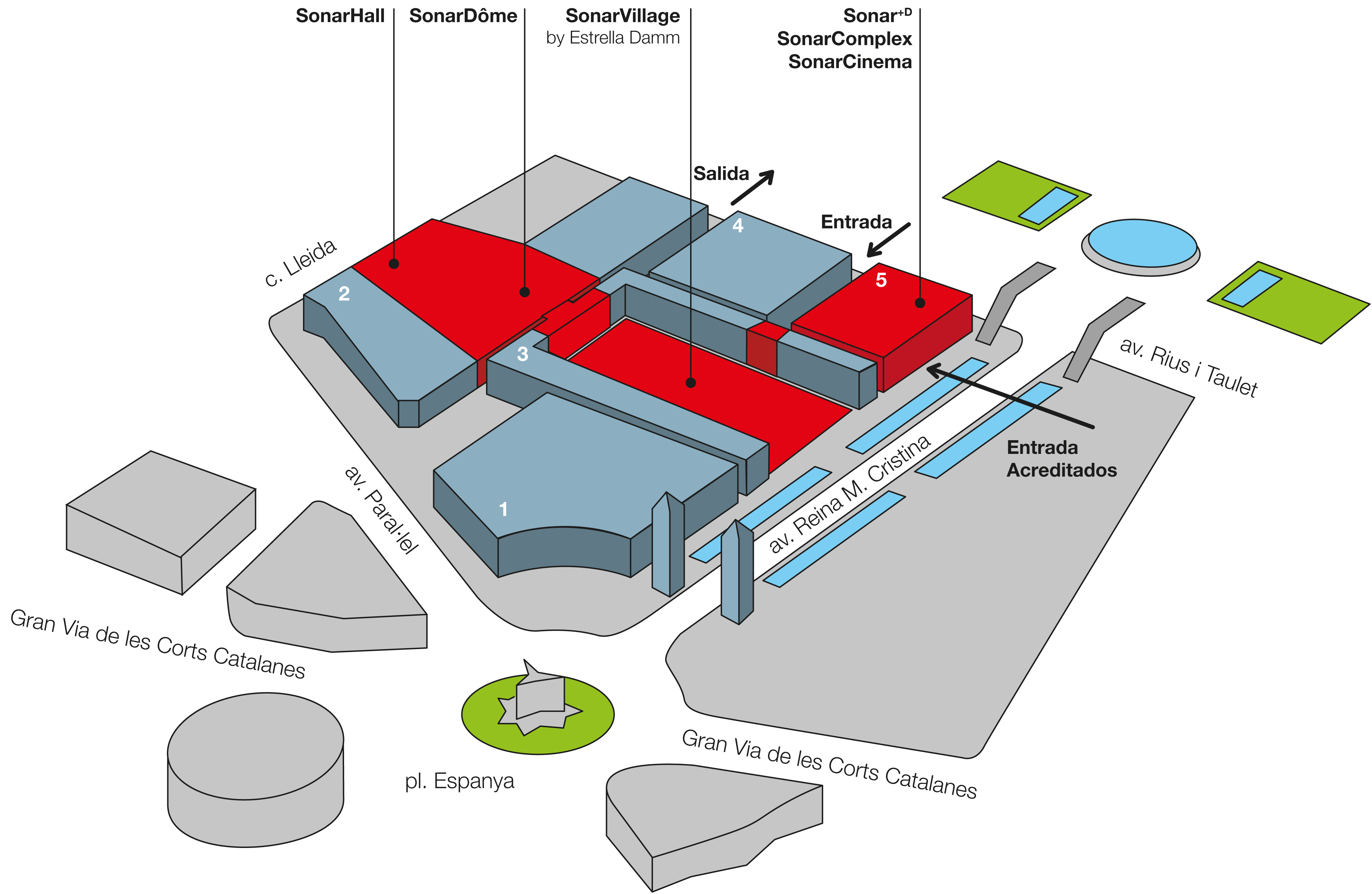 El cambio más grande este 2013 es la nueva ubicación del Sònar de dia, que abandona el MACBA y el CCCB por un espacio más grande, algo que muchos agradecerán: la Fira de Montjüic, en Plaza Espanya. Eso le sitúa mucho más cerca del Sònar de nit, que sigue teniendo lugar en el recinto ferial Fira 2, en Hospitalet.