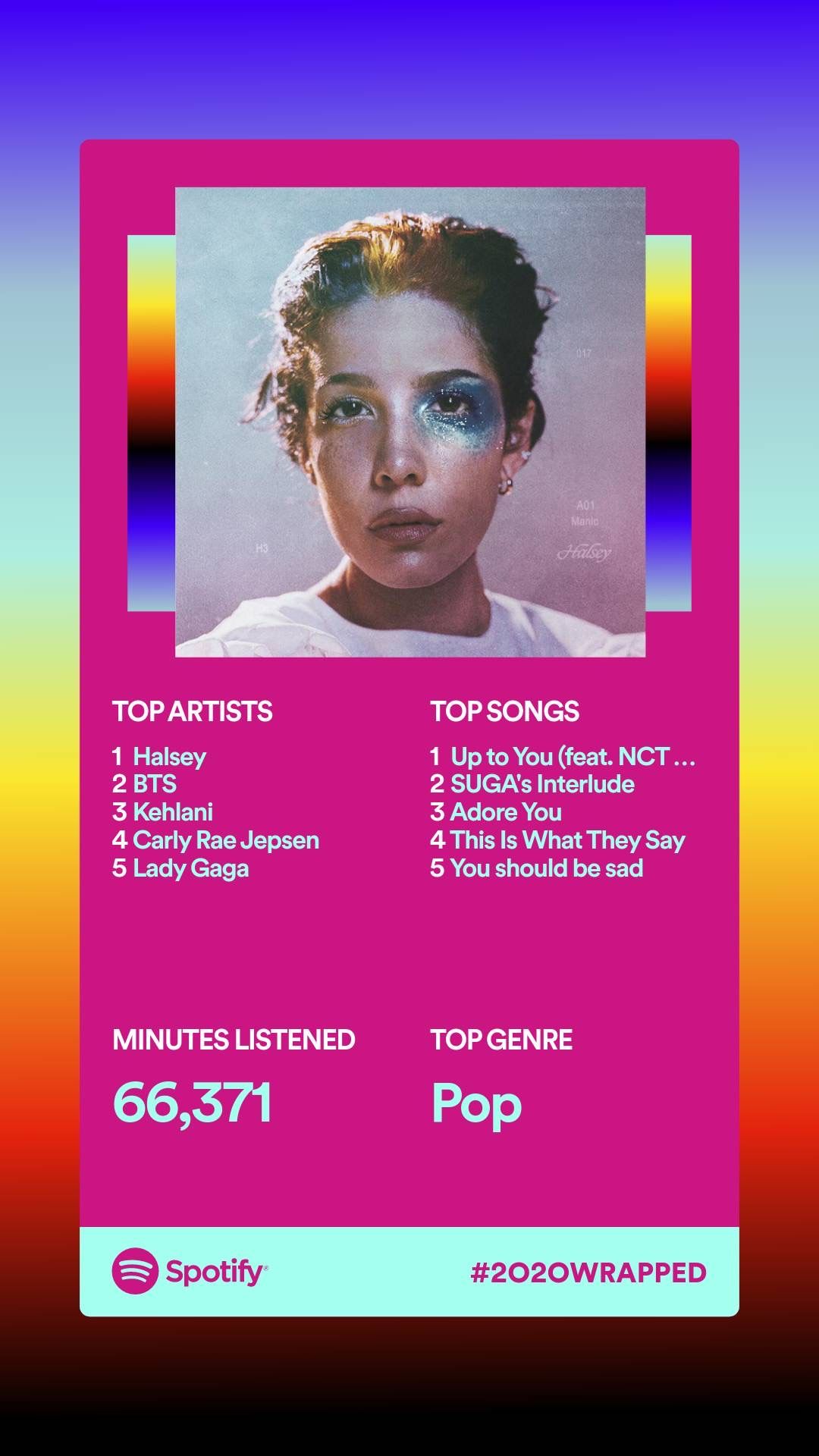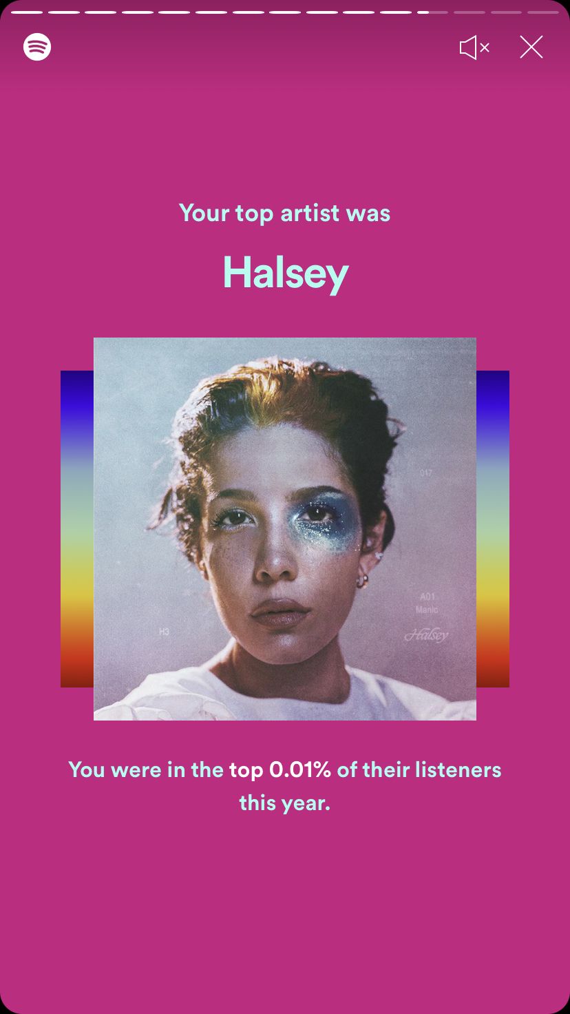 Cuando terminen, no se olviden de compartir sus hábitos de escucha en sus medios sociales para ver cómo se comparan con sus mejores amigos y otros a los que siguen. ¿Tienes curiosidad por saber cómo se vería? Echa un vistazo a mi propio Spotify Wrapped abajo: