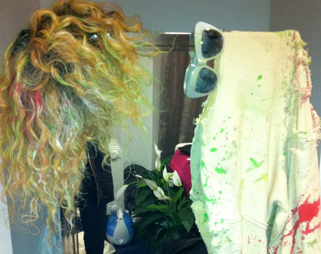 la coreógrafa de rihanna (@hihatprod en twitter) ha subido una foto de cómo ha quedado el vestuario de la pop star que comparte más que el tono de piel con raquel bollo... la peluca de rihanna...