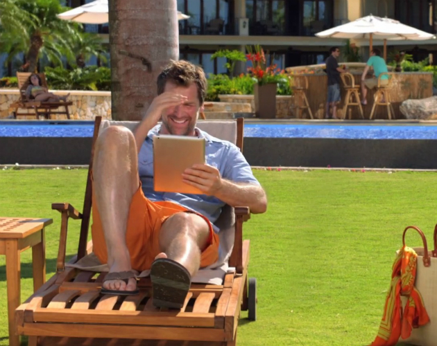 De hecho, los protagonistas son tanto una pareja gay como una heterosexual... amazon se ha marcado un tanto con la comunidad lgbt anunciado la última versión de su libro electrónico, el kindle, con una pareja gay... en un resort paradisíaco, una chica pizpireta lee bien contenta el libro electrónico, mientras que un apuesto chico intenta, sin éxito, conseguir leer con su tablet (que se intuye que es un ipad)... por pedir, pediríamos que algun día la homosexualidad deje de ser el epicentro de los anuncios y que una pareja homosexual pueda aparecer usando cualquier producto sin tener que condicionar el anuncio por su orientación sexual... aún y así, amazon tiene muy claro que el público lgbt es un target potente...