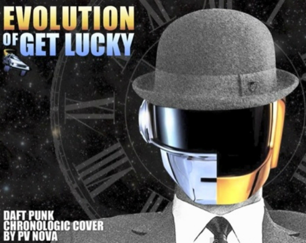 Hasta entonces, aquí tienes el chronologic cover de 'get lucky' de daft punk... en este caso, 'get lucky' de daft punk pasa por las décadas desde 1920 hasta 2020 (fíjate que aún no hemos llegado a esa)... olvídate de los mash ups, de los covers acústicos con siete cámaras diferentes, lo que se lleva ahora es el chronologic cover... el éxito ha sido masivo y ahora esperamos que nos muestre las versiones completas de todos los covers... las versiones son de lo más fieles a lo que sonaba en esa época en los 40, por eso tenemos un rollito rockabilly en los 50, hippy en los 60, disco en los 70, petardo en los ochenta, etc... ¿y eso que es? pues es una versión de un tema, en la que pasas por distintas etapas...