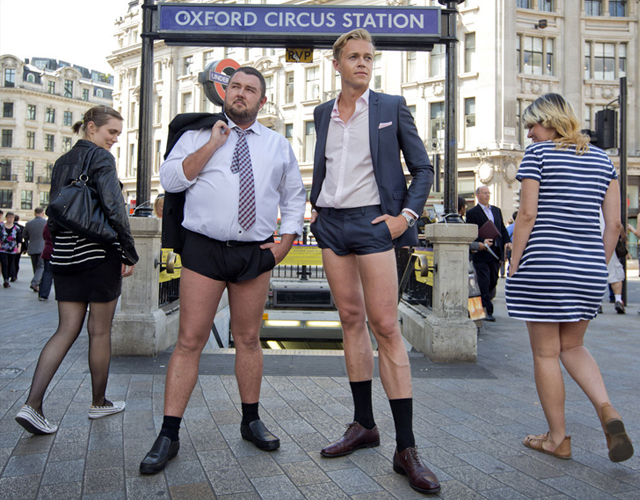 hombres en shorts promocionan un nuevo programa de channel 4... 4 hombres en shorts muy cortos pasean por londres para promocionar un programa de tv... si ellas pueden, ellos también: cuatro hombres muy diferentes pasean por el centro londres con unos shorts tan extremadamente cortos que poco dejan a la imaginación... en la siguiente galería podrás comprobar cómo algunos viandantes, especialmente mujeres, son pilladas con los ojos fuera de las órbitas al ver a estos hombres trajeados en shorts presumiendo de piernas... no todos lucen unos muslos envidiables, ya que el de los calcetines arcoíris parece que tiene celulitis... ¿por qué? porque forman parte de una campaña de promoción de 'shorts original', nuevo espacio...