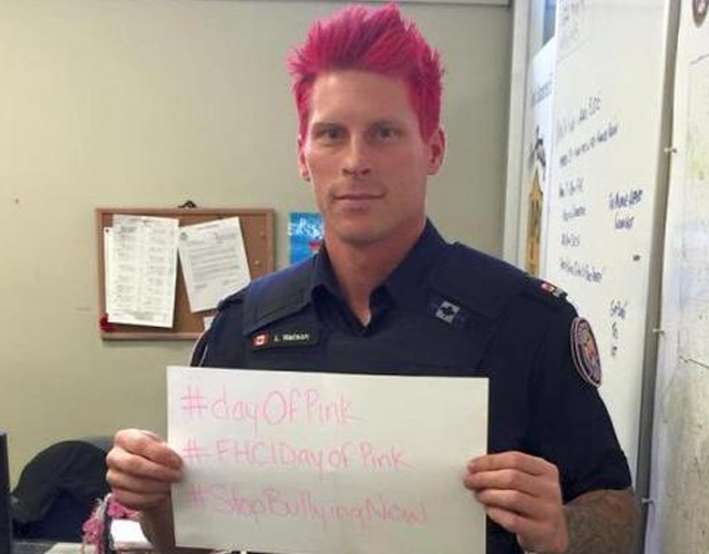 Este día, como muchos saben, se originó cuando en un instituto en nueva escocia un chico fue atacado por llevar una camiseta rosa, fuera o no homosexual... evitar la homofobia y la transfobia, especialmente en las edades adolescentes, empieza por actos así de sencillos pero efectivos... un policía buenorro se tiñe de rosa contra la homofobia... ¿qué te parece que un policía se atreva a luchar así contra la homofobia? ¿lo harían en españa?... el policía luke watson no se cortó un pelo en teñirse de rosa, y hay que decir que seguía estando buenorro (tatuajes incluidos)... ya se sabe que los canadienses son simpáticos, agradables y muy educados... también queda demostrado...