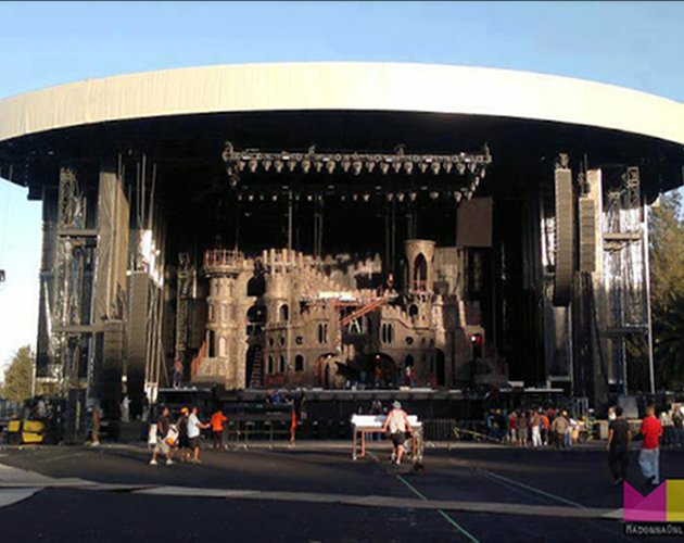 y ¡cuídate, gaga!... la guerra abierta entre lady gaga y madonna tiene un nuevo capítulo, aunque ni ellas mismas lo sabrán, y ha tenido lugar en la ciudad de méxico... lady gaga actuó la semana pasada en el foro sol, en el que madonna actuará en un mes... asi que una de cal y otra de arena... el concierto de méxico, eso sí, no fue tan genial como se esperaba: gaga se encontró mal e interpretó 'marry the night' en pijama, y no cantó temas como 'edge of glory', 'paparazzi' o su nuevo tema 'princess die'... la curiosidad es que el equipo de madonna ya había instalado el escenario del 'mdna tour', la famosa estructura con techo circular hinchable, eso sí, sin el cartel de mdna en el techo...