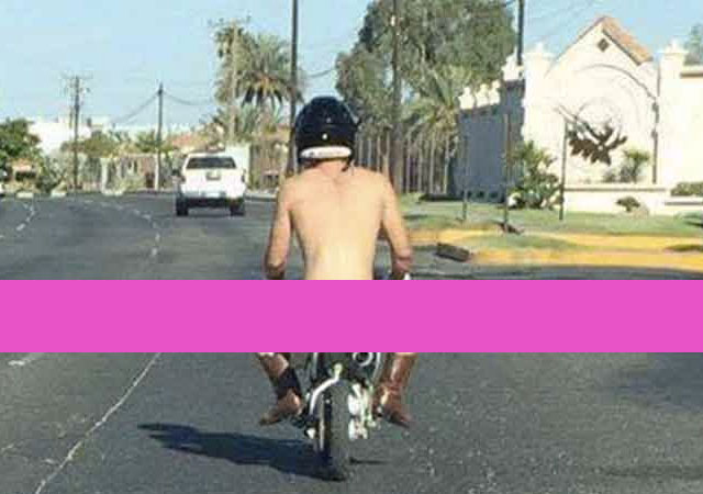 El motorista desnudo que se pasea por mexico enseñándolo todo... te dejamos con el polémico vídeo del motorista desnudo que acecha a los ciudadanos de mexico... cuidado, si vives en mexico puede que te encuentres a un motorista completamente desnudo enseñando su cuerpo serrano mientras va montado en una bici muy pequeña... no se ha podido confirmar si el motorista desnudo va a así por el calor, por haber perdido una apuesta o porque simplemente es un exhibicionista que quiere enseñar el pene a todos los conductores... aunque poca broma, que podría causar más de un accidente... eso sí, el hombre lleva unas buenas botas para poder conducir correctamente y un casco para proteger su cabeza y, al menos en ese sentido, cumplir...