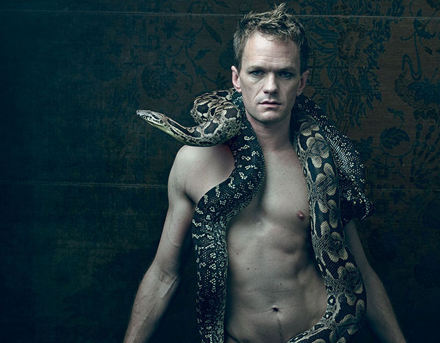 neil patrick harris sin camiseta y con una serpiente enorme entre las piernas: el actor gay de 'how i met your mother', fotografiado por annie leibovitz para vanity fair... la reputada annie leibovitz es la fotógrafa, que muestra a neil patrick harris desnudo, o más bien a punto de ser desnudado por una serpiente que se le mete en el paquete... con esa boa y esa pitón al cuello, ¿estará haciendo un guiño a los fans de cierta actuación de britney? no te pierdas la foto completa de neil patrick harris sin camiseta y con todo detalle... ¡menuda pitón tiene entre las piernas neil patrick harris! desde luego, la fotito se las trae: tras finalizar la 9ª temporada de la serie que le catapultó al estrellato (tras 'doogie howser')...