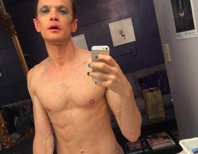 neil patrick harris, desnudo en el backstage de 'hedwig'... ¿disfrutaremos algún día de un neil patrick harris desnudo y sexy? lo hemos tenido con la serpiente, pero queremos más... apenas le queda una semana a neil patrick harris para terminar su andadura en el musical de broadway de 'hedwig and the angry inch' y ha querido celebrarlo con un desnudo muy poco agraciado... el resultado es terrorífico: piel blanca como la leche, cara de agotamiento, las venas marcadas y el maquillaje mal puesto... esperamos que se alimente un poco mejor, tome un poco el sol y deje crecer algún pelito... el rubísimo actor se desmaquilló como cada noche, se disponía a pasar por la ducha, pero antes decidió hacerse una selfie con su iphone 5 blanco...