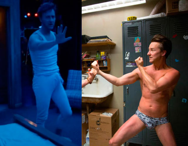Es una de las películas con más nominaciones a los oscar 2015: 'birdman' podría ser una de las triunfadoras en los premios que se entregarán el 22 de febrero... entre sus nominaciones está la de edward norton como mejor actor de reparto, ¿crees que se lo llevará? aquí arriba puedes verle luciendo cuerpo a sus 45 años, y también en una escena clave tienes a edward norton empalmado... pero hay otro momento de esta gran película en la que sale edward norton desnudo completamente cambiándose de ropa y viéndose en el espejo... edward norton desnudo en 'birdman'... si no lo quieres en fotos te lo traemos en gifs para que admires su culo, su torso y todo lo demás: edward norton desnudo en 'birdman' en...
