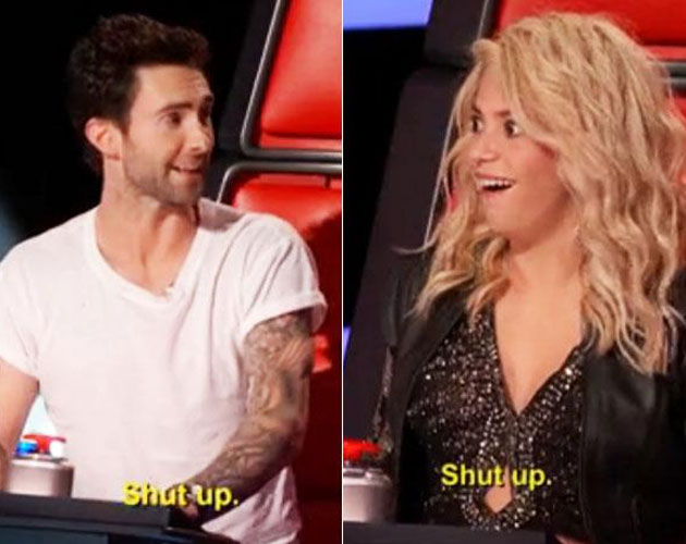 ¿alguien le puede regalar un diccionario de shakiro?... pero adam levine y blake shelton no se enteran de mucho y comienzan a indignarse... shakira exclama "what's wrong with me? what's wrong with me?" (tantas cosas... ¡vaya pique! claro que adam se levanta y abraza a su compañera tras haberle dicho que cierre la boca, todo con mucho compañerismo y risas, sí, pero creemos que el pobre intérprete de 'moves like jagger' no entiende nada de lo que dice la cantante de 'loca'... ), y el cantante de maroon 5 le responde en español para que deje de interrumpirle con un perfecto "¡cállate!"... adam levine contra shakira en 'the voice'... resulta que una de las concursantes empieza a hablar en castellano, y claro, eso seduce totalmente a shakira...