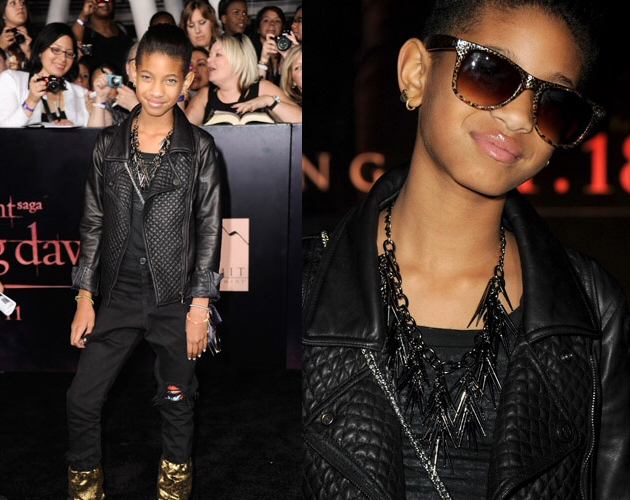 willow smith acudió al estreno mundial de 'twilight: breaking dawn part 1', con su ya habitual cara de perdonavidas... ¿es normal que una niña de su edad vaya a ver una película de este tipo? ¿os la imagináis viendo la escena en la que kristen stewart da a luz un bebé que robert pattinson tiene que comerse? los americanos son muy puritanos y por eso mismo ya han salido críticas contra la familia smith por dejar a la pequeña willow ir al estreno de forma oficial...