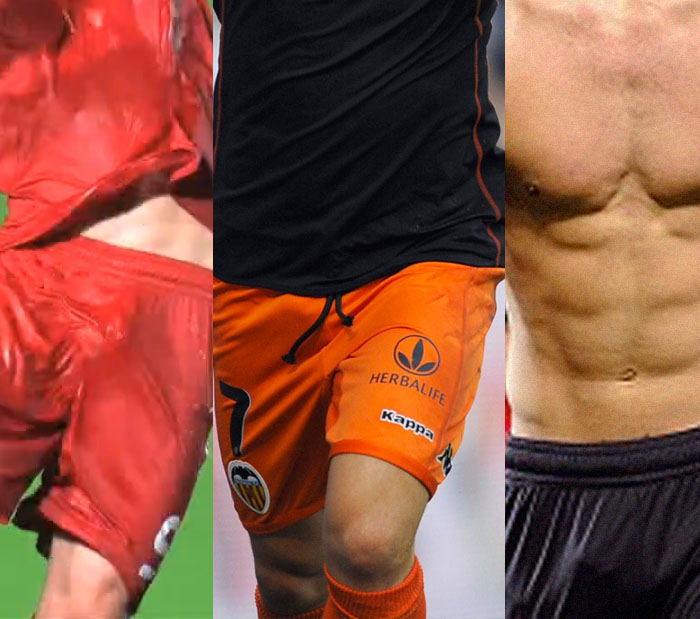 En portada tienes a fernando torres, que marca bien, a david villa y también a sergio ramos... el de gerard piqué no lo vamos a poner porque es pequeño y le deja un poco en evidencia... estamos un poco altos de testosterona... ¿conoces alguno mejor?... material parece que no falta... hemos dedicado unos minutitos a buscar en google la palabra 'bulge', que es paquete en inglés, más el nombre de algunos jugadores de la selección española de fútbol...
