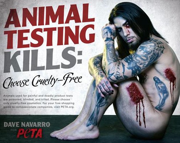 El músico, que comparte peluquero con melendi y usa más eyeliner que taylor momsen, es tan fan de desnudarse como de los derechos de los animales, y es por eso mismo que se ha aliado con peta para hacer más pública una lucha que lleva teniendo lugar mucho tiempo: la de las pruebas químicas con animales para productos cosméticos... dave navarro desnudo, el ex de carmen electra y guitarrista de jane's addiction ha sido la última celebrity en desnudarse por una buena causa... nos alegramos que haya celebridades que apoyen a peta en esta cruzada, aunque parece que esta vez, con el tema cosmético, les ha costado encontrar a una mujer famosa que ponga su cara... en la foto concreta vemos como navarro se sienta, desnudo y recogido sobre sí...