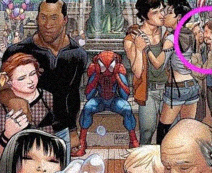 A mucha gente esto le ha parecido "un paso adelante" o "un horror"... ¿un paso adelante para qué? a ver si ahora va a ser necesario que salgan mariquitas en las portadas de los cómics para normalizar el asunto... si por cada polémica barata salvaran a un niño africano ya no habría hambre por allí, ni nada de eso... en uno de los nuevos ejemplares de spiderman que saldrá a la venta a finales de septiembre, aparece una pareja de marijoses dándose un besito... fíjate tú qué cosas... ¡qué chorradas!