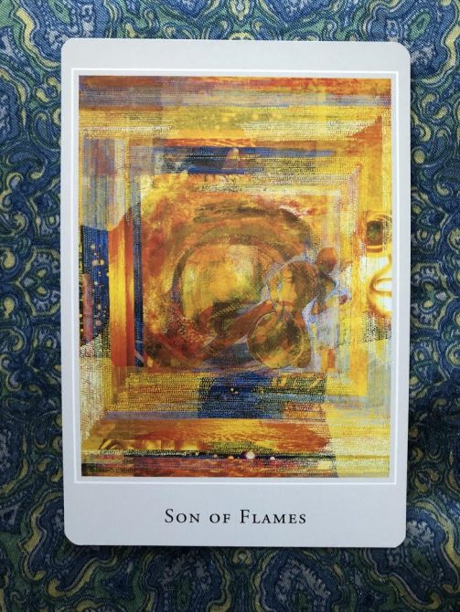 Las tarjetas de la corte aparecen para recordarnos quiénes somos. Hay dieciséis tarjetas de la corte y cada una sugiere un aspecto de nosotros mismos que necesita ser despertado. El Hijo de las Llamas (o el Caballero de Varas como se le llama más comúnmente) es usted en su momento más dinámico y carismático. Piensa en la última vez que te sentiste profundamente capacitado y completamente vivo. ¿O cuándo fue la última vez que permitió una expresión sin filtrar de su autenticidad e ingenio? Ese es el Caballero de Varitas, un aspecto de ti mismo que nunca retiene su brillo y talento.