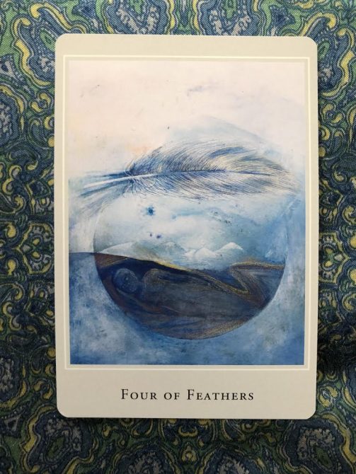 Esto puede ser un poco embriagador, pero las plumas son el reino mental, así que voy a intentarlo. Es un juego de palabras, por cierto, porque las plumas de esta baraja son más comúnmente llamadas espadas en otros lugares. Y las espadas son la forma en que cortamos las ilusiones de nuestras vidas y llegamos a la carne de ella. Nuestras mentes son invaluables porque sin ellas, ¿cómo metabolizaríamos nuestras experiencias en un significado? ¿Cómo sabríamos qué historia estamos escribiendo realmente con nuestras vidas en primer lugar?