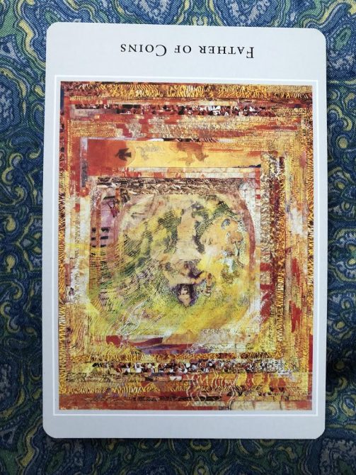 Las tarjetas de la corte aparecen para recordarnos quiénes somos. Hay dieciséis tarjetas de la corte y cada una sugiere un aspecto de nosotros mismos que necesita ser despertado. El Padre de las Monedas (o el Rey de los Pentáculos como se les llama más comúnmente) eres tú cuando tomas la responsabilidad absoluta de tu vida a través del control del mundo que te rodea. Esta es una expresión extremadamente poderosa de tu voluntad que puede ser usada tanto para construir imperios como para derribarlos. Como maestro del elemento Tierra, este aspecto del yo sugiere que estás parado en tu poder y que eres el que manda. Hay una tremenda confianza en sí mismo aquí.