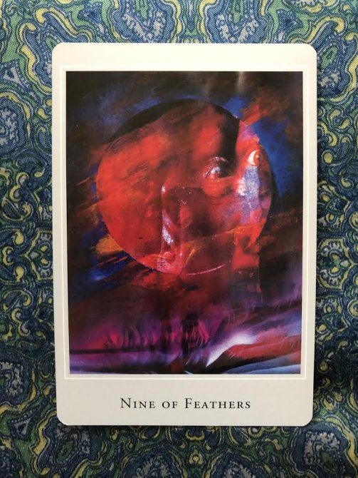 Nuestra mente no está para atraparnos, está para protegernos. Desafortunadamente, sus métodos de protección pueden inducir ansiedad y depresión. El Nueve de Plumas nos presenta la oportunidad de poner nuestra mente en jaque. Llamo a esta carta la carta de la Reina del Drama porque, seamos sinceros, nuestras mentes pueden ser grandes reinas del drama. Lo hacen para ayudarnos a prepararnos para el peor de los casos, pero muy raramente el peor de los casos llega a buen puerto. Cuando podemos respetar nuestra mente sin que nos tomen el pelo estamos abrazando completamente la magia que el Nueve de Plumas puede proporcionar.