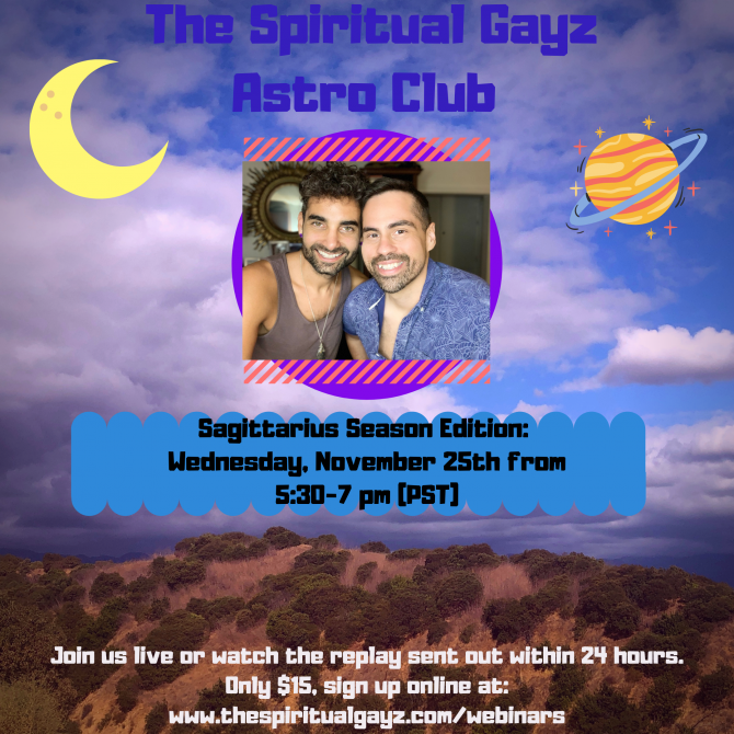 No hay escasez de jugosa Astrología en estas últimas semanas del 2020 pero no puedo entrar en todo esto aquí. Así que deja de hacer frente como si no tuvieras hambre de más y únete al Club Espiritual de Astro Gayz. Este es un lugar para que la gente que comparte el amor por la Astrología se reúna en comunidad para aprender, crecer y reír. El Astro Club es una reunión mensual dedicada a expandir tu conocimiento del cosmos, conectándote con buscadores de ideas afines y mirando tus cartas individuales para tener un mejor sentido de dónde está arraigando la energía actual en tu vida. Únete a nosotros aquí!